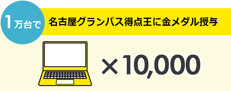 | 概 要 | 期間中に愛知県内および専用HP等からお申込み頂いたパソコンの台数に応じて、最大3名の方に金メダルを進呈します。 ※1名はグランパスのチーム得点王へのプレゼント |