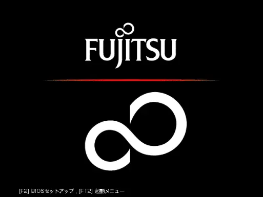 パソコンの電源を入れて、「FUJITSU」ロゴ画面の下にメッセージが表示されている間に、【F12】キーを何度か押す
