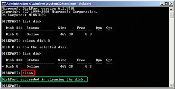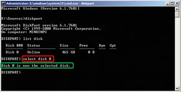 「DISKPART>」が表示されたら、「list disk」と入力し、Enterキーを押して、搭載されているディスクの情報が表示されるので、Windowsをインストールしたいディスクの番号を確認
