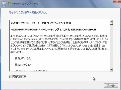 「今すぐインストール」をクリックし、ライセンス条項画面が表示されたら「同意します」にチェックを入れて[次へ]をクリック