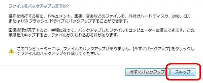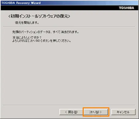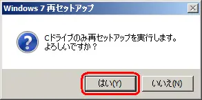 「Cドライブのみ再セットアップを実行します。よろしいですか?」というメッセージが表示されたら、「はい」をクリック