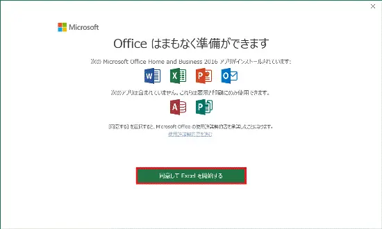 スタートメニューにOfficeアプリ(WordやExcelなど)があるかどうかを確認し、クリックして起動させます。使用許諾に関する画面が表示された場合は、内容をしっかりと読んで同意する場合は「同意する」ボタンをクリックしましょう。