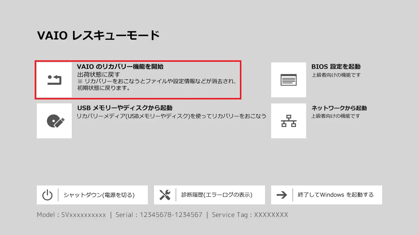 周辺機器を接続したまま初期化を行うと、機器の影響を受けて途中でエラーが発生したり、リカバリ後にパソコンが正常に動作しなくなったりすることがあります。